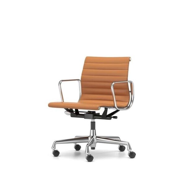 Vitra Ea 118 Kontorstol Med Swivelarmlænvippemekanisme Cognac Læderkrom Stel