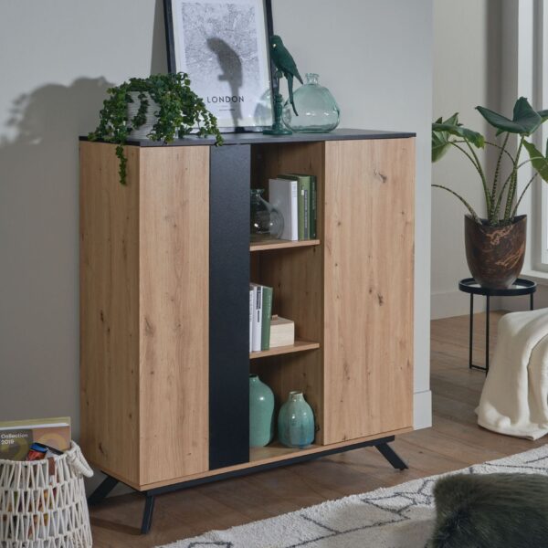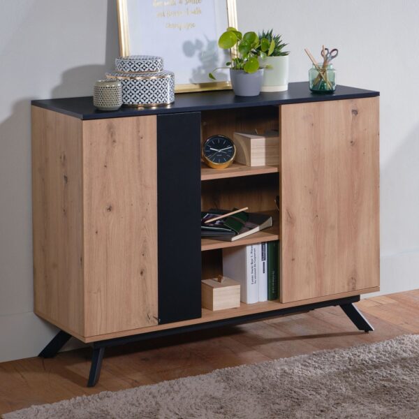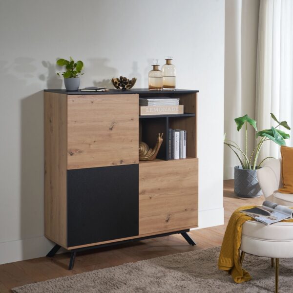 Skænk Kommode Entr?skab I Egetræsdekorsort Japandi-look 110x87x40 Cm