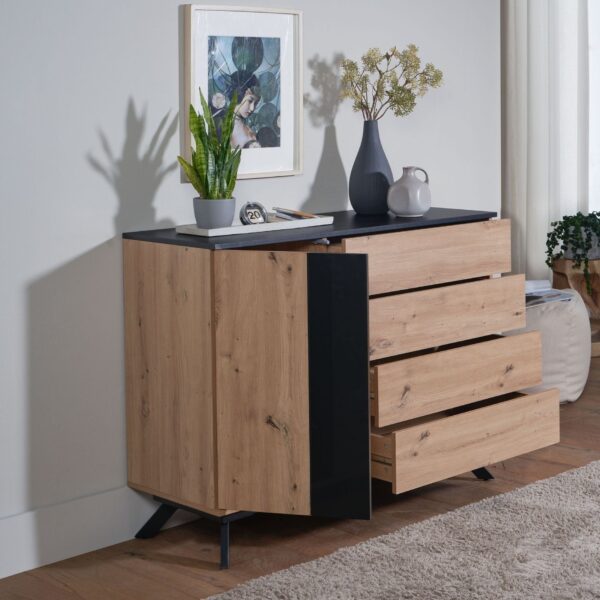 Mdf-skænkkommode I Egetræsdekorsort Med 4 Låger Metalben 110x125x40 Cm