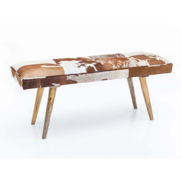 Entr?bænk I Træ Med Gedeskind 120 X 40 X 52 Cm Brun Og Hvid