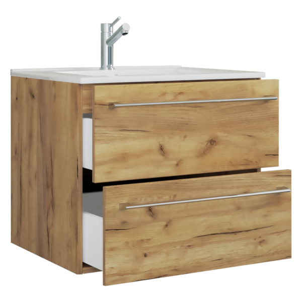 Badeværelsessæt Underskab Med Keramisk Håndvask 50x60x46 Cm Naturfarvet