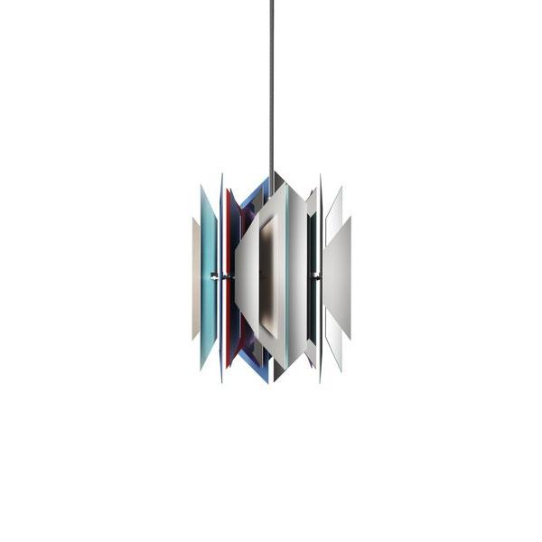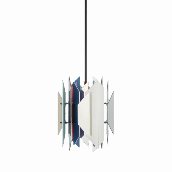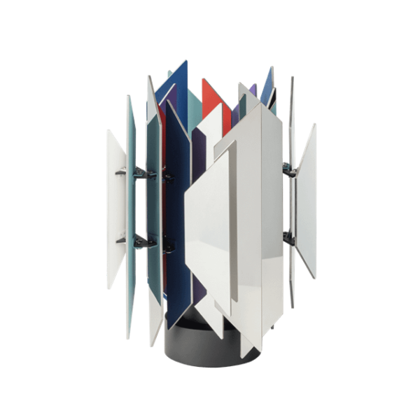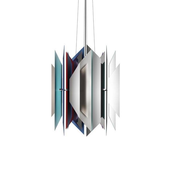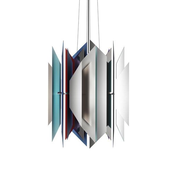 Poleret rustfrit stål med flerfarvede trapezer, rø