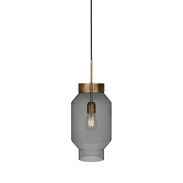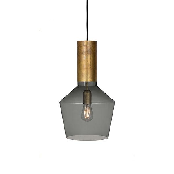 Konsthantverk Fenomen Bred Pendel – Røgfarvet Glas Messing