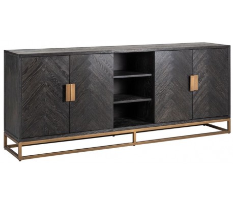 Blackbone Sideboard I Egetræ Og Stål B225 Cm – Børstet Sortantik Messing