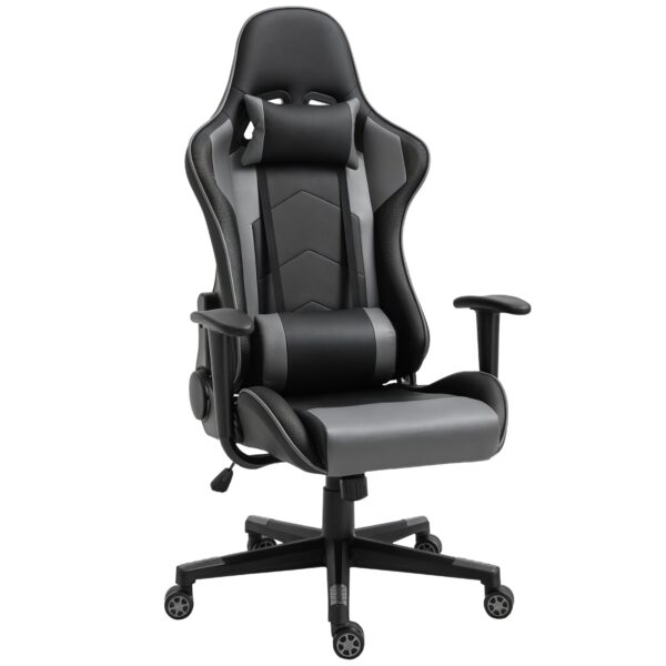 Design Gamer stol i sort og grå – med sølvfarvede detaljer Sæde med ergonomisk og velformet polstring Specielt bred justeringsvinkel på ryglænet Ryglæn med åndbart stof Sideflanker kontrasterende i sort Kontrastfulde sømme i farven hvid Stilfuld nakkestøt