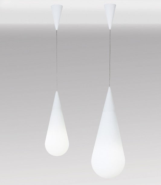 Goccia pendel fra Rotaliana Denne dråbe stammer fra to overlappende glaselementer, der ikke viser nogen diskontinuitet i skiltets elegance og kompakthed. Den koniske overdel er gengivet i rosenvinduet, hvilket simulerer en spejlende refleksion på loftet.